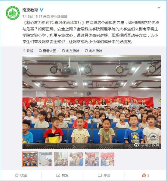 本文刊于2018年7月5日南京市教育局官方微博“南京教育”,链接: