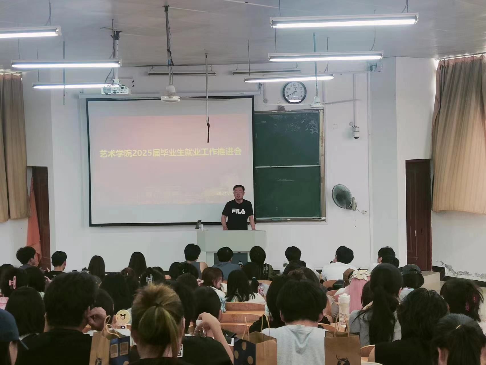6月14日,为加快推进2025届毕业生就业指导工作,给学生提供更好的生涯规划指导服务,艺术学院于在6月14日在6300召开2025届毕业生就业动员会暨年级大会。艺术学院党委副书记鲍锐、服装系主任张华、环艺系主任徐晶、产品系主任郑祎峰、学工办主任丛扬子及2021级全体学生参加本次会议。