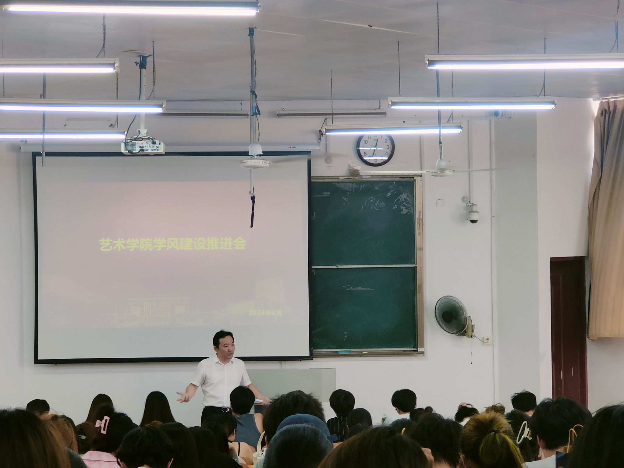 召开学风建设推进会。5月20日,艺术学院在6306召开学风建设推进会,学院领导、系主任、辅导员和部分教师、班主任代表参加。艺术学院领导班子把考风考纪教育作为当前学风建设和教学管理的一件大事来抓,严格落实学院考风考纪教育工作的责任制和责任追究制,明确分工,责任到人。会议要求以管理促进学风,常态化抓好考场阵地,规范考试过程,保证考试质量,严肃考风考纪。