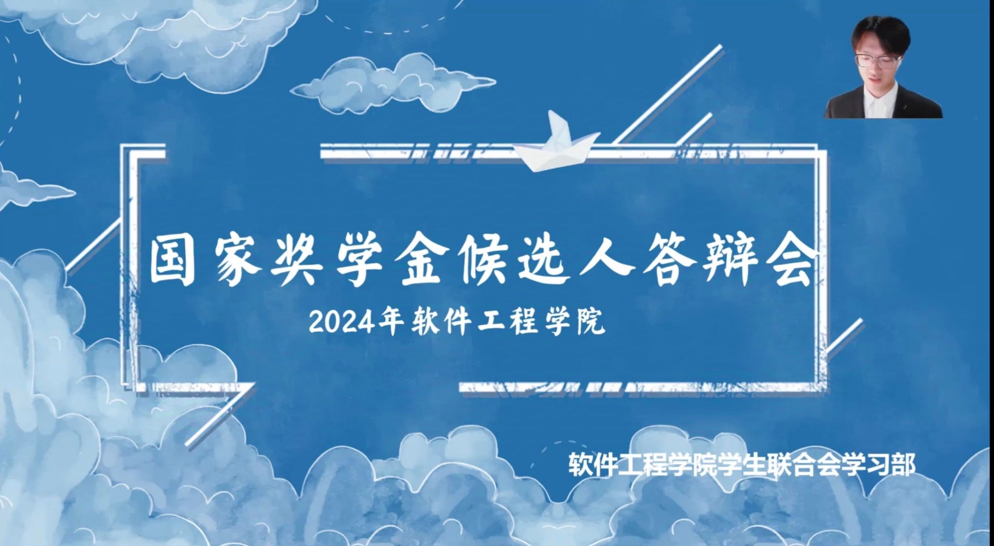 软件工程学院于2024年9月18日19:30在线上成功开展了国家奖学金候选人答辩会。此次会议旨在选拔出最优秀的国家奖学金候选人,展示软件工程学院学子的卓越风采和学术成就。出席的领导及嘉宾包括软件工程学院党委副书记徐斌书记、系主任、部分班主任代表以及全体辅导员。此外,还有五位经过初选脱颖而出的国家奖学金候选人参加了此次答辩。