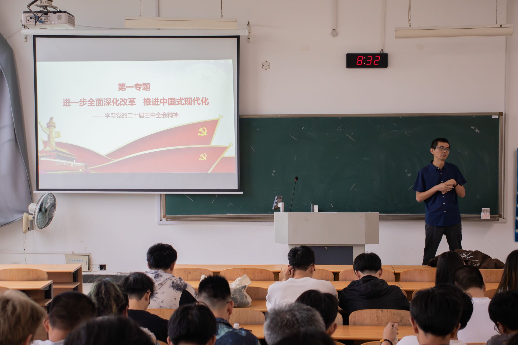 在“进一步全面深化改革 推进中国式现代化”讲座中,陈老师从党的二十届三中全会主题出发,围绕新时代全面深化改革的重大成就,深入讲解了全面深化改革的精神内涵及深刻影响。接着,陈老师向同学们介绍了改革开放的经验和中国式现代化改革遵循的原则,他强调了改革过程中的问题导向和重点突出,并指出我国坚持人民至上的原则与他国看似公平实则独权的“选举民主”形成了鲜明对比。