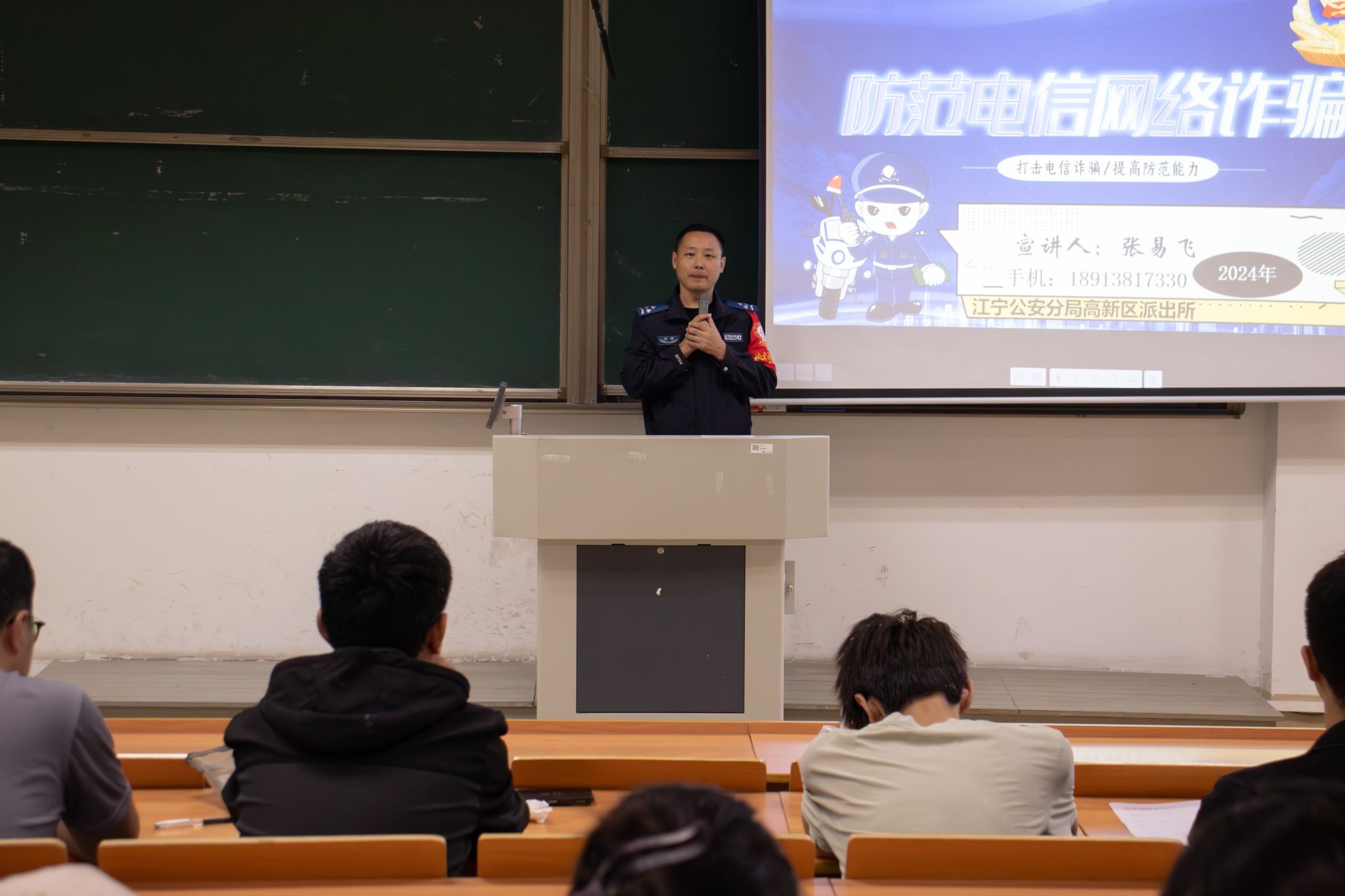 为切实做好防范电信网络诈骗宣传教育工作,加强反诈力度,材料工程学院特邀江宁公安分局高新区派出所的张易飞警官于10月14日至18日分批次对全院学生开展了反诈宣讲会,我院学子积极参加宣讲会,认真聆听与学习。
