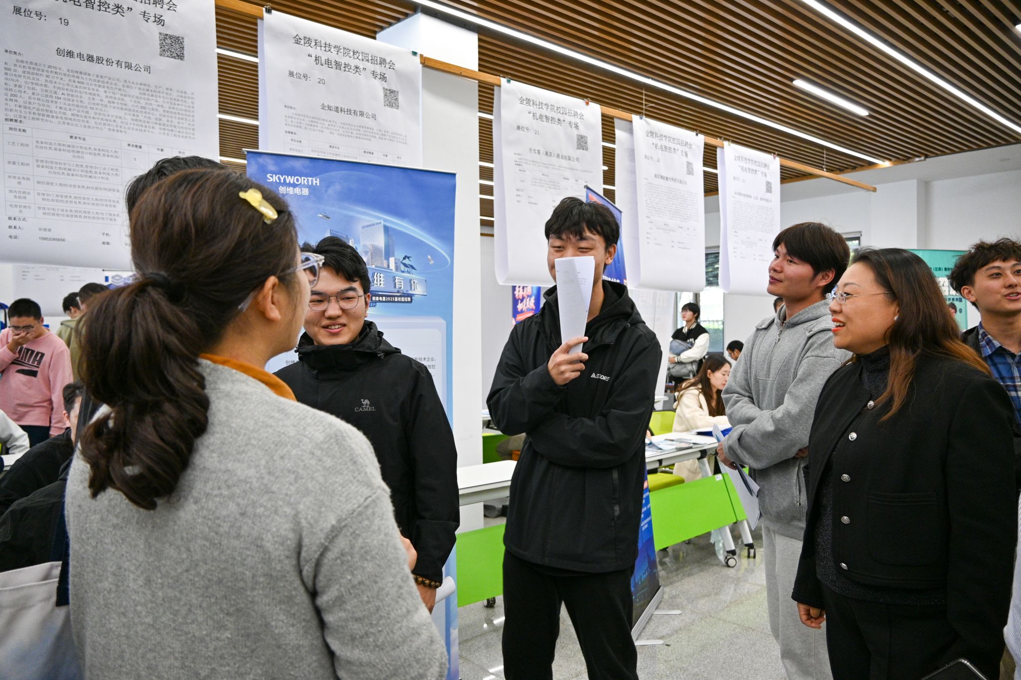 参会的二十多家企业来自江苏乃至全国多地,有创维电器股份有限公司、南京正大天晴制药有限公司、南京肯特复合材料股份有限公司、南京中竞科智能科技有限公司等知名企业,为学生们提供了多样化的选择,提供了电气工程师、机械工程师等就业岗位数十个。