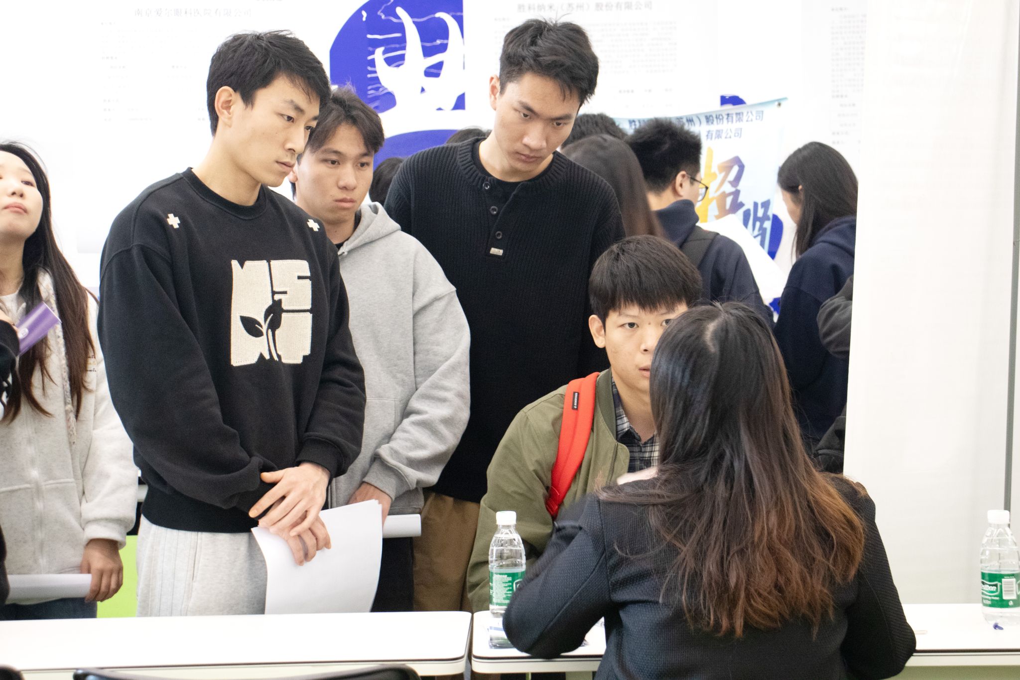 此次大型校园招聘会邀请到江苏博思通新材料有限公司、江苏康耐特光学有限公司、南京爱尔眼科医院等多家企业,涵盖了多种不同专业的岗位需求,为毕业生提供了广阔的选择空间。招聘会现场,同学们身着正装,手持精心准备的简历,积极与企业代表一对一地沟通交流,展现出了良好的综合素质和高涨的求职热情。招聘会现场气氛热烈有序,最终多名毕业生与用人单位达成初步就业意向。