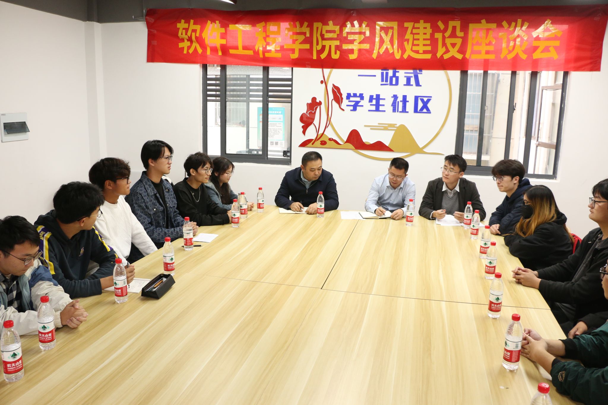 为推动优良学风建设,迎接本科教育教学审核评估工作,软件工程学院于10月31日在北01栋的一站式学生服务中心召开学风建设座谈会。软件工程学院党委副书记徐斌、副院长徐永华、辅导员王天宇以及各班学习委员参加本次座谈会。