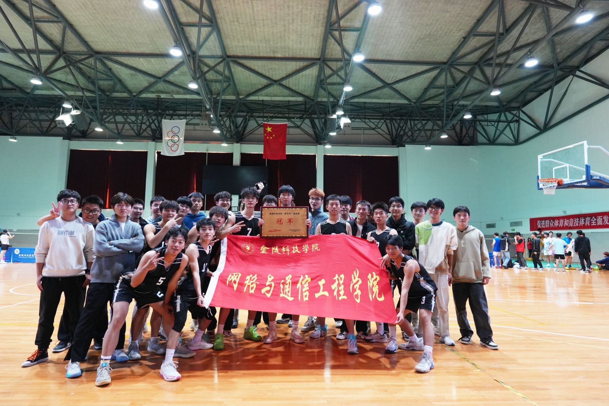 网络与通信工程学院篮球队在“新生杯”比赛中表现地非常出色,同学们凭借默契的配合、精准的投篮和顽强的防守,一路过关斩将,冲到决赛。在决赛中,面对实力强劲的对手,大家越挫越勇,始终保持着冷静和自信,最终战胜对手,站上了冠军的领奖台。