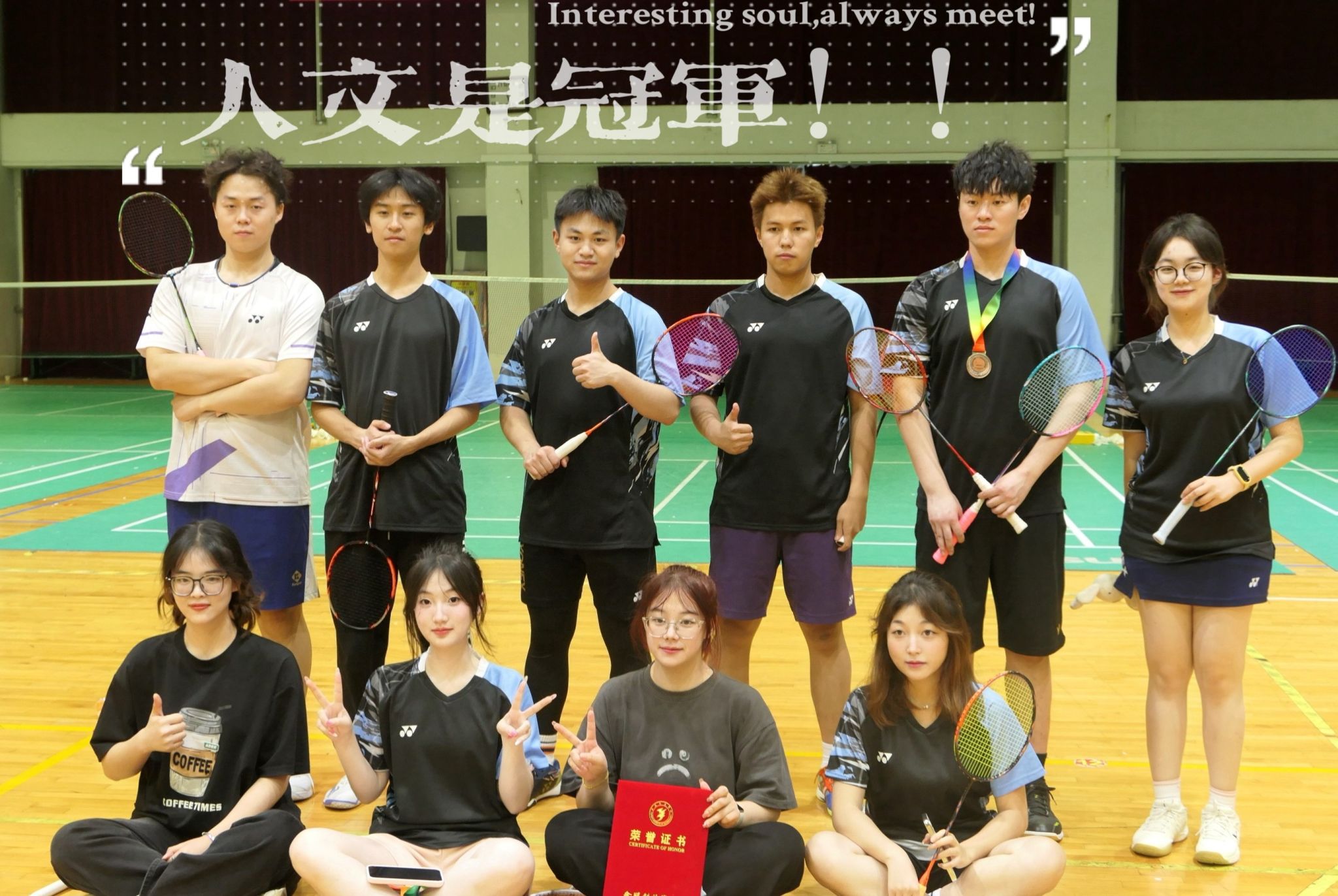 羽毛球队的同学们在日复一日的晨训晚练中,用每一次挥拍、每一次跑动充分诠释对羽毛球的专注与热情,用汗水浇灌心中的希望之花,并且最终在决赛场上结出了果实。让我们为赛场上的青春力量喝彩,共同期待赛场下更加青春洋溢、砥砺奋进的人文学子形象。(审稿人:高欢欢)