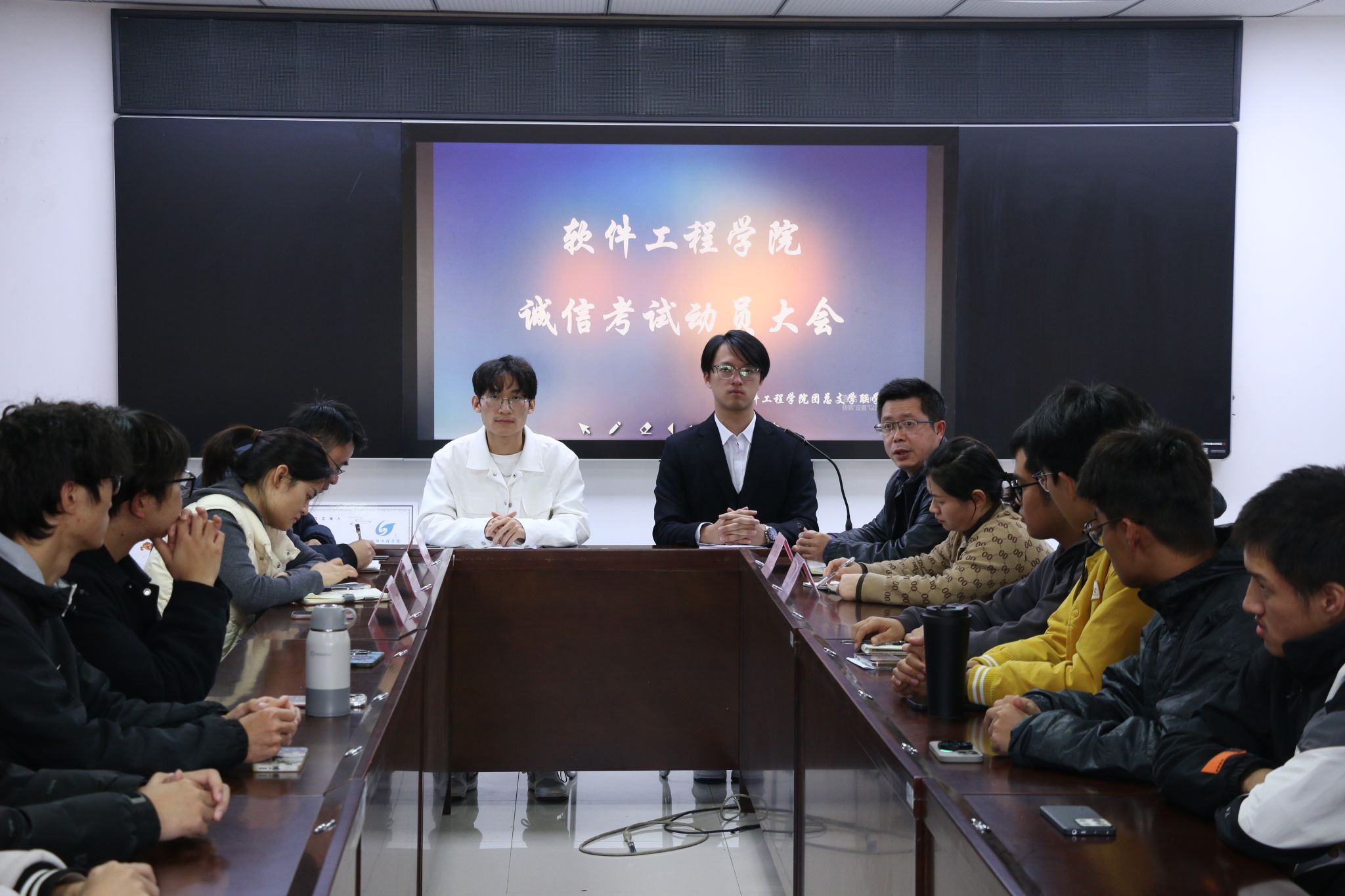 为加强学生诚信意识,确保考试的公平公正,迎接即将到来的期末考试。11月29日下午,软件工程学院在科技楼2-423会议室召开了诚信考试动员大会。软件工程学院党委副书记徐斌、全体辅导员及各班班长学委参加了此次会议。