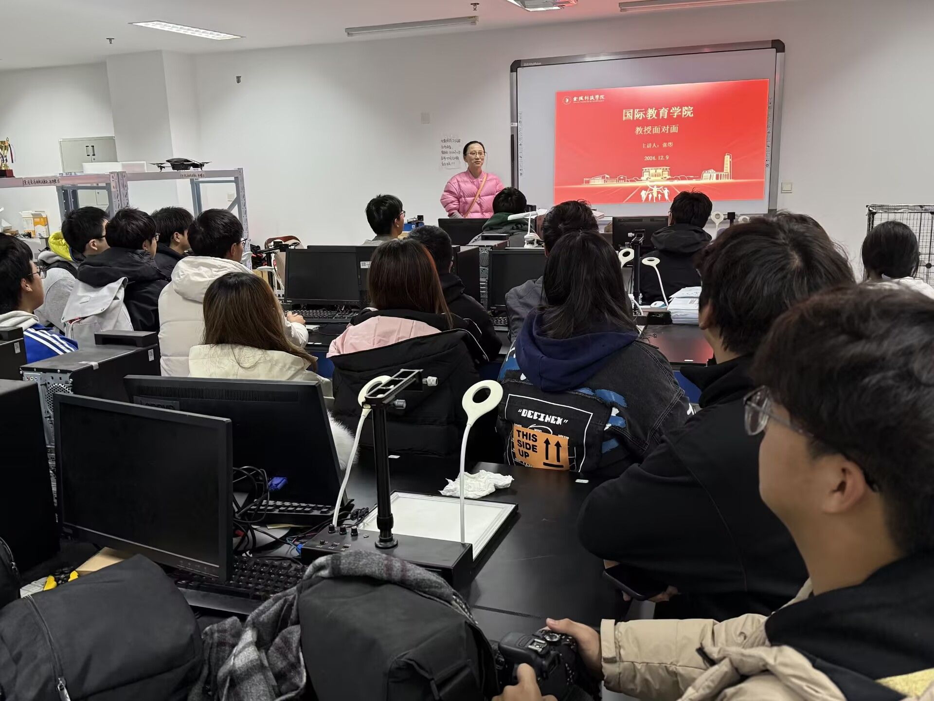 2024年12月10日下午五点,国际教育学院邀请智能科学与控制工程学院张曌老师在科技楼4号楼713教室为中澳软件工程项目学生举办了一场机器人创新讲座。国际教育学院2024级中澳软件工程项目全体学生参与了此次活动。