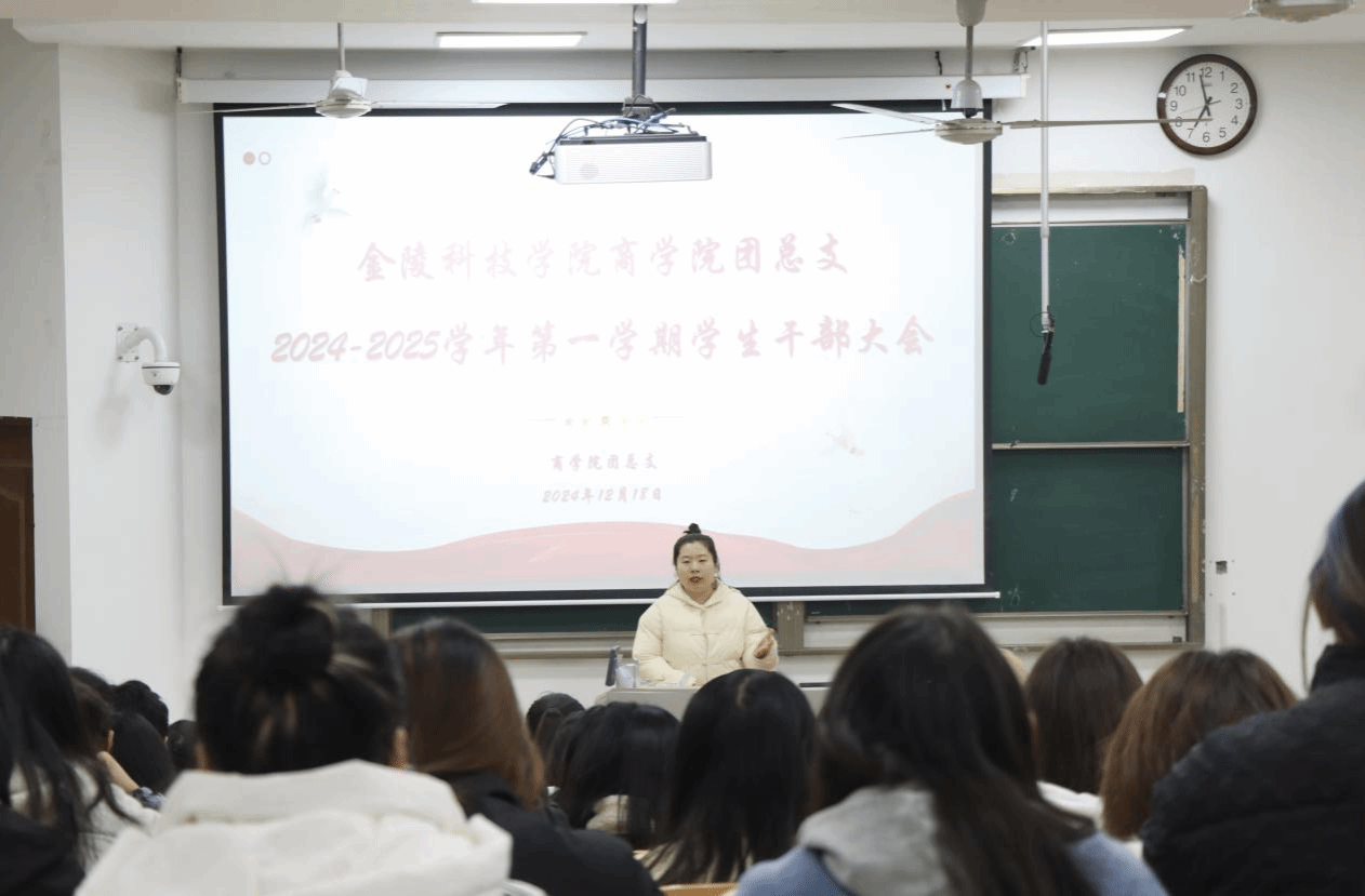 2024年12月18日晚,开云在线商学院在教学楼8300教室召开2024-2025学年第一学期学生干部大会。本次会议由商学院团总支书记徐冰洁老师主持,旨在提升学生干部责任意识与服务精神,增强凝聚力与影响力,推动团学工作高效运行,助力商学院蓬勃发展。