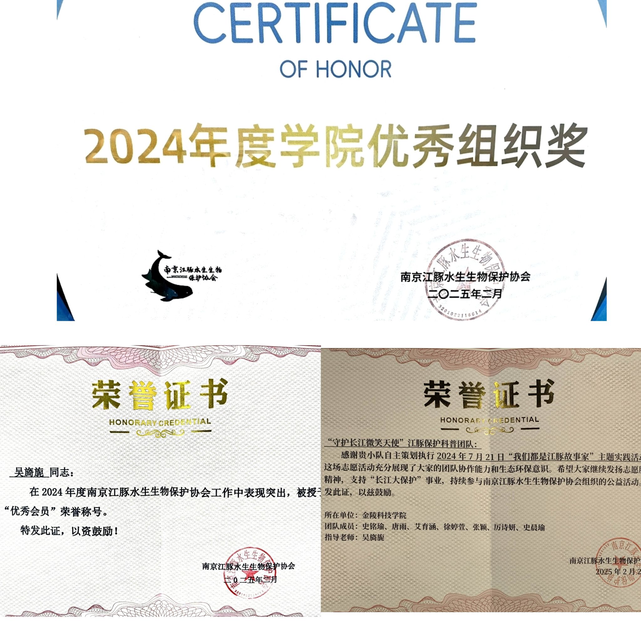 此次表彰是对动科学院深耕生态保护、创新育人模式的高度肯定,未来,学院将继续以专业力量守护长江生态,以青春之名绘就生态画卷,为长江江豚保护事业和可持续生态未来贡献更多智慧与力量。(采写人:吴旖旎;审核人:黄淑婧)