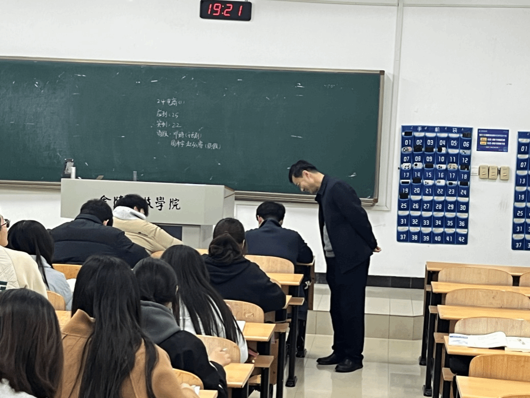 晚上7点,徐书记一行来到勤业楼3教学楼商学院新生晚自习集中区域,逐一查看各班级出勤纪律和自习质量。在检查过程中,徐书记细致翻阅学生课本笔记,询问课程适应情况,并与学生就高数学习、专业认知等问题展开交流。此外,徐书记还与新生辅导员进行了沟通,指出晚自习是学生巩固知识、提升能力的重要时段,辅导员应注重教育管理和引领帮扶,引导学生养成良好学习习惯、促进学生全面发展。