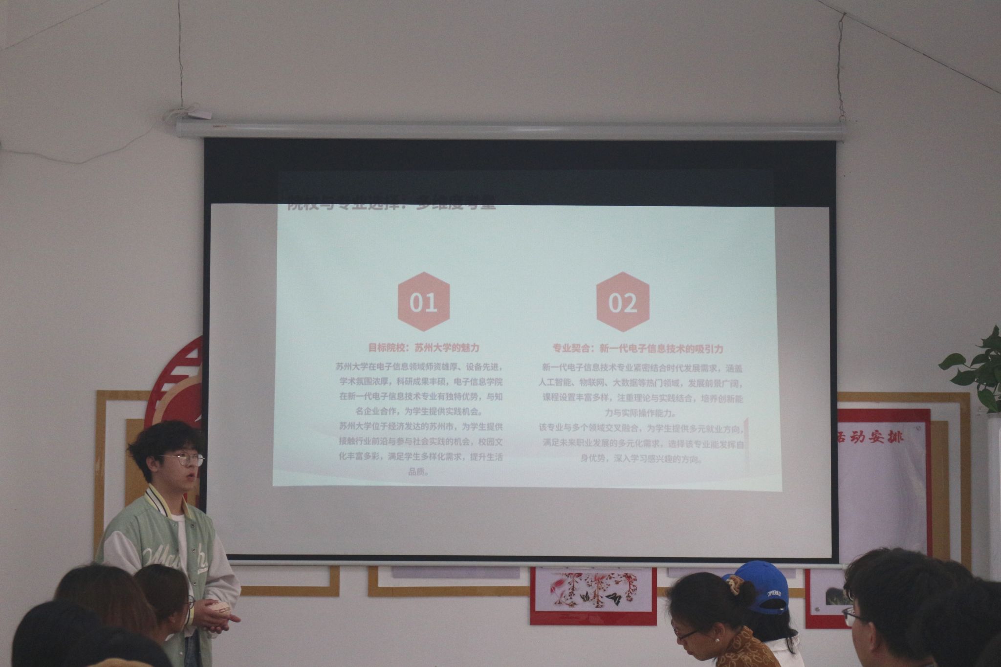 分享会上,四位来自不同年级的优秀学子分享了各自的金科奋斗故事。已被苏州大学拟录取的徐李同学是国家奖学获得者、原院学生会轮值主席。他讲述了自己考研上岸的心路历程,分享了备考过程中的学习方法、时间管理技巧以及面对压力时如何调整心态,激励在场有考研意向的学生坚定信念、勇往直前。开云在线校长奖学金获得者、月桐路科技创新团队负责人李蕊同学聚焦科研领域,详细介绍了自己在科研道路上的点滴付出与丰硕成果。她的经历使在场学生深刻感受到科研探索的艰辛与乐趣,也激发了大家的科研兴趣。党员代表赵雨欣同学分享了自己的入党初心和入党历程。借助自己丰富的社会实践经验,她勉励在场学生要不断提升思想觉悟,以实际行动彰显新一代青年的使命担当。大二学生干部代表王凤仪同学围绕自己担任学生会组织部部长的工作经历,畅谈在组织活动、沟通协调、团队管理等方面的收获与成长,为有志于学生工作的学生提供了有益参考。