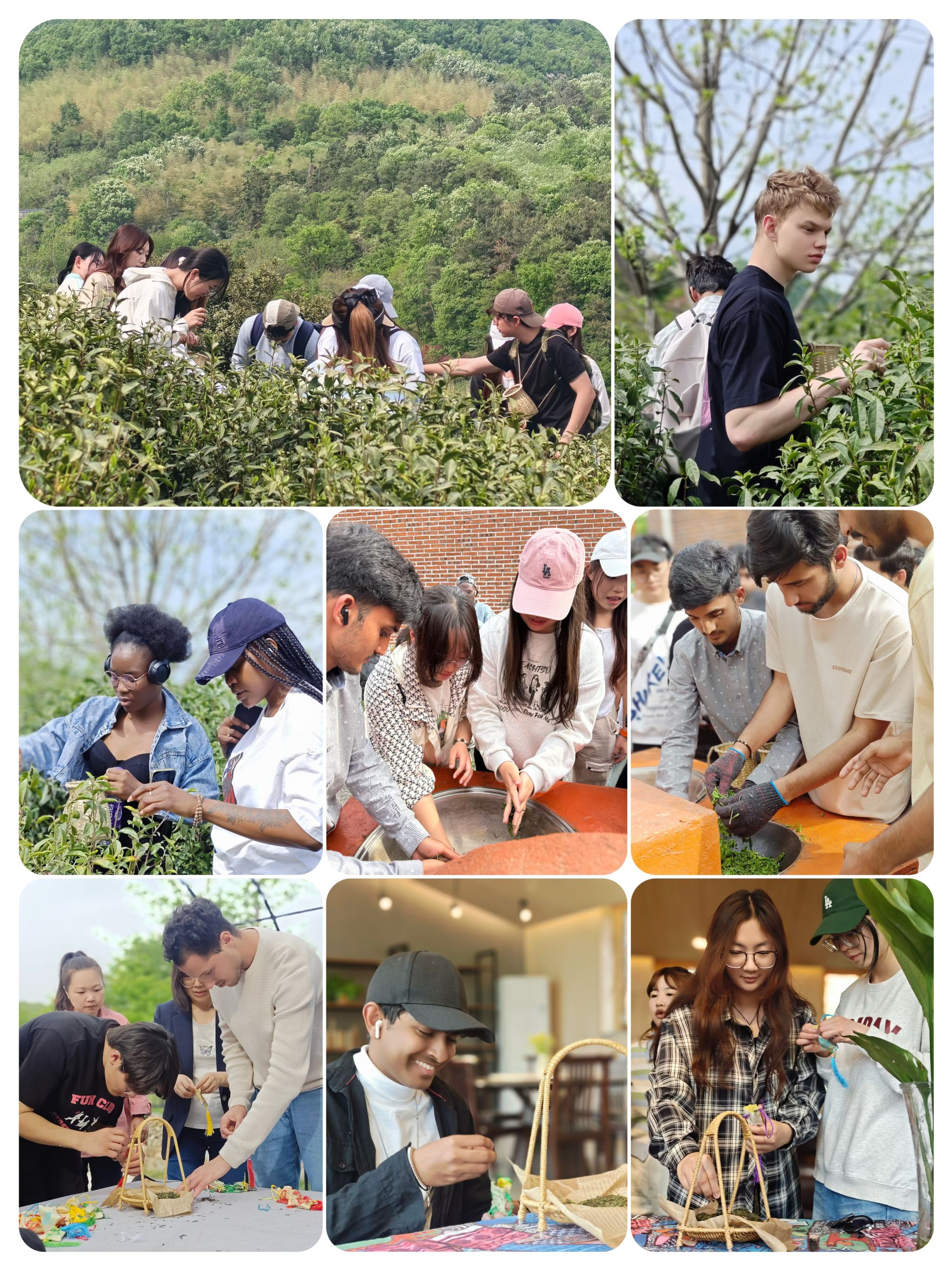 4月16日下午,一场别开生面的大学生劳动教育实践活动在溧水区慧泽自然国际学校精彩上演。此次活动由外国语学院联合国际教育学院共同组织,30名英语专业大一新生与23名留学生一同参与,在采茶、炒茶、制作香囊的过程中,深入体验中国茶文化,开启了一场难忘的文化交流之旅。外国语学院党总支部书记李星、国际教育学院副院长王耘也参与了此次活动。