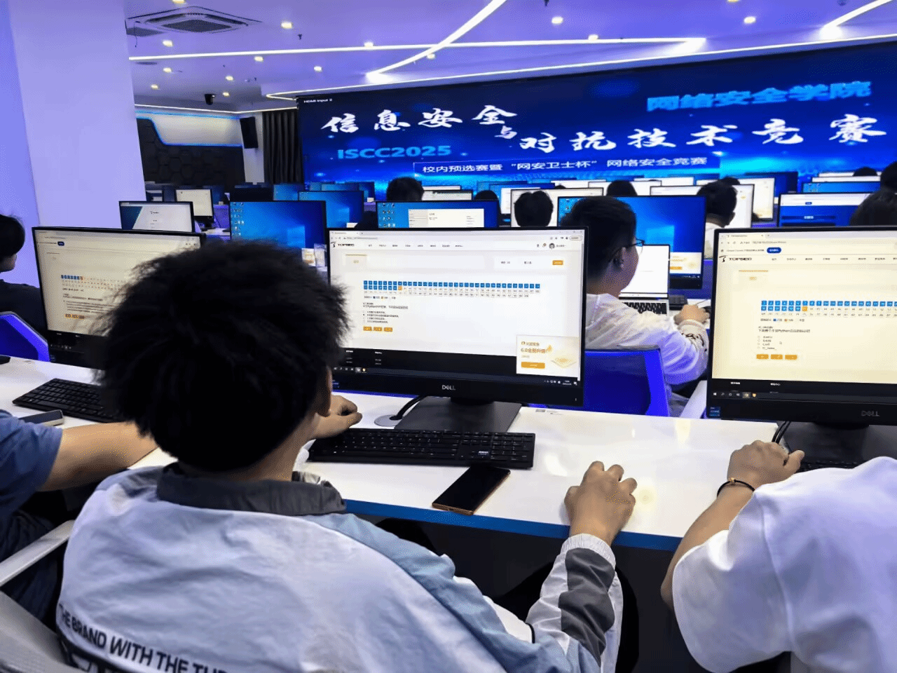 4月20日,由创新创业学院和教务处主办,网络安全学院承办的“一院一品”项目校赛ISCC校级选拔赛,暨“网安卫士杯”网络安全竞赛理论赛段在网络安全学院网络空间安全综合演练室(科技楼4-1204)落下帷幕!来自网安学院、电信学院、计算机学院、智控学院近百名参赛选手齐聚一堂,展开了一场网络安全知识的巅峰较量。本次理论赛作为校内预选赛的首个赛段,不仅为实战赛段选拔了精英选手,更展现了同学们扎实的理论功底与临场应变能力!