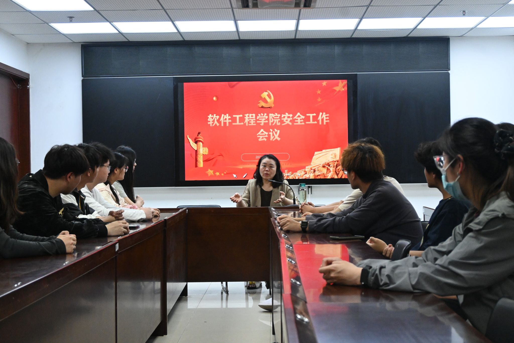 4月27日,我校软件工程学院在科技楼二号楼423会议室召开安全委员专题会议,学院各班安全委员参会,学工办副主任朱丽丽老师主持会议并作工作部署。