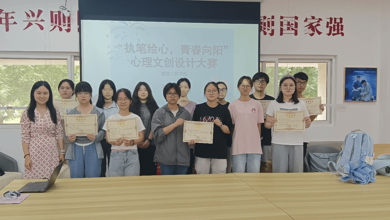 4月3日至5月7日,由学生工作处主办、建筑工程学院承办的“执笔绘心,青春向阳”心理文创设计大赛成功举办。活动吸引全校近百名学生踊跃投稿,最终评选出一二三等奖10组、优秀奖22组。颁奖仪式于5月21日中午在南08学生社区活动室举行。建筑工程学院心理辅导站姜艳老师主持,获奖同学代表参加。