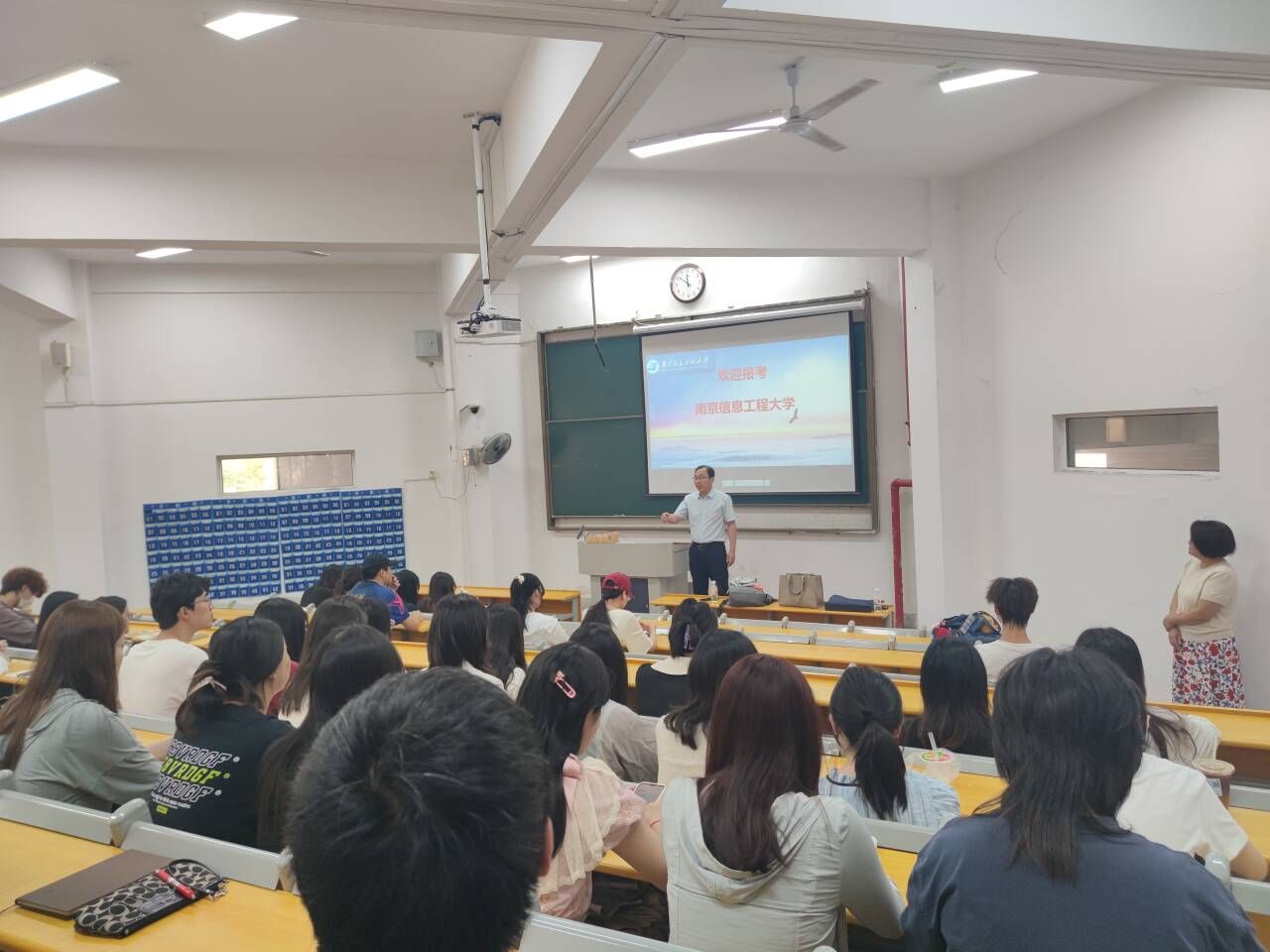 5月29日上午,在幕府校区农科楼113教室,人文学院邀请南京信息工程大学文学院举办了2026年研究生招生宣讲会。人文学院党委副书记董宇、副院长赵步阳,南京信息工程大学文学院党委书记郭雨、中国语言文学专业负责人庞秀慧老师、国际中文教育专业负责人徐开妍老师以及校友贺宁同学出席。院2022级70余名学生参加了宣讲活动。
