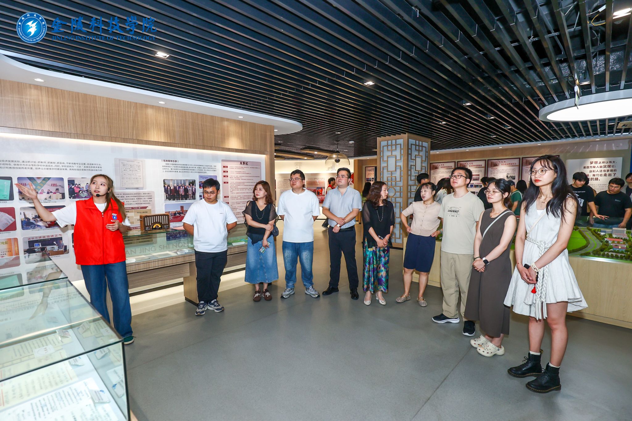 活动伊始,校友们在学院志愿者的引导下走进金科校史馆,深入了解学校的发展历程。从建校初期的艰苦创业,到如今在工商管理、智能制造、新能源材料等领域的突出贡献,一幅幅珍贵的历史照片、一件件具有代表性的成果,生动展现了学校的办学理念。
