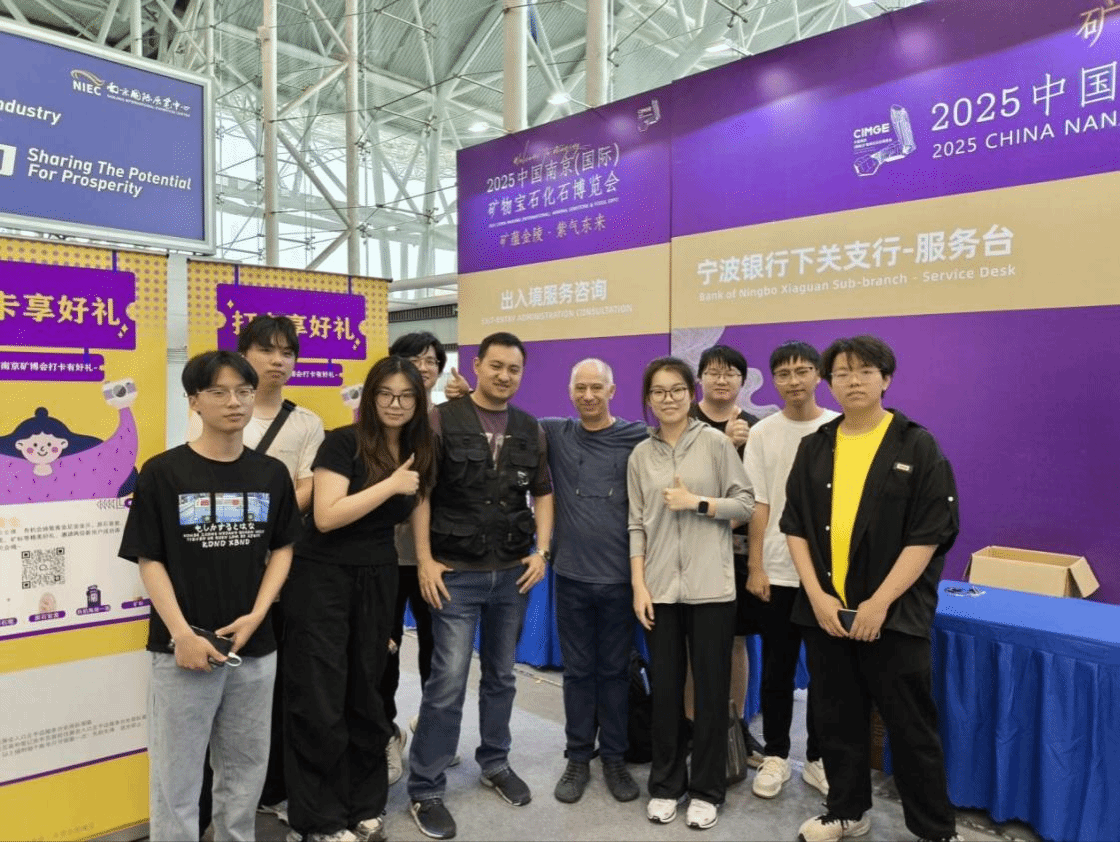当六朝古都迎来初夏,一场汇聚全球矿物精华的 "紫色盛宴" 在南京国际展览中心启幕。2025 中国南京(国际)矿物宝石化石博览会(以下简称“南京矿博会”)以 "矿蕴金陵 紫气东来" 为理念,于5月15日至19日期间,向世界展示地球亿万年孕育的矿物瑰宝。在这场跨越国界的文化交流盛事中,我校材料工程学院84名志愿者以专业素养与青春热忱,为展会构筑起坚实的服务保障,成为现场闪耀着知识光芒的风景线。
