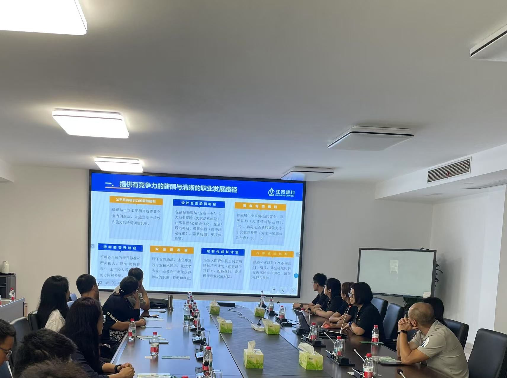 在交流座谈会上,江苏超力和江苏天工的企业代表介绍了企业的发展战略、人才发展规划以及对高校人才的需求特点。他们表示,企业一直关注高校人才培养,期待与学院在人才招聘、实习基地建设、产学研合作等方面开展全方位的合作。沐阳详细介绍了学院的学科专业设置、人才培养模式、师资队伍建设以及近年来毕业生的就业情况,希望通过校企合作,不断优化人才培养方案,提高人才培养质量,为企业输送更多高素质应用型人才。我校2021届通信工程专业毕业生毛浩杰同学介绍了自己在江苏超力的工作情况,他希望广大学弟、学妹能够学好专业知识,为今后高质量就业打下坚实基础。