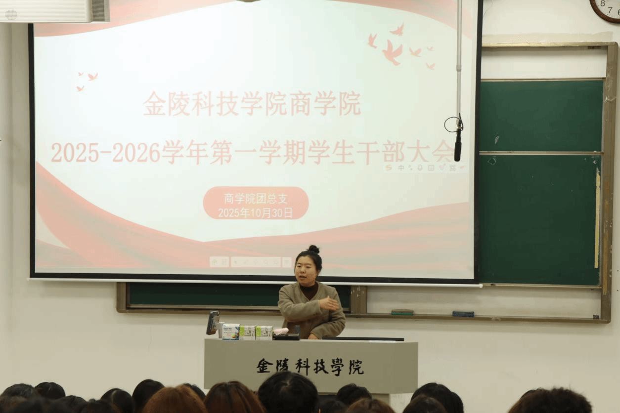 10月30日晚,我校商学院2025级新生学生干部启航大会在教学楼8300教室顺利召开。本次大会由商学院团总支书记徐冰洁老师主持,旨在帮助新任学生干部明确角色定位、熟悉工作职责,快速融入学院学生工作体系。商学院团总支、学生会主要干部及2025级全体新生班委参加了会议。