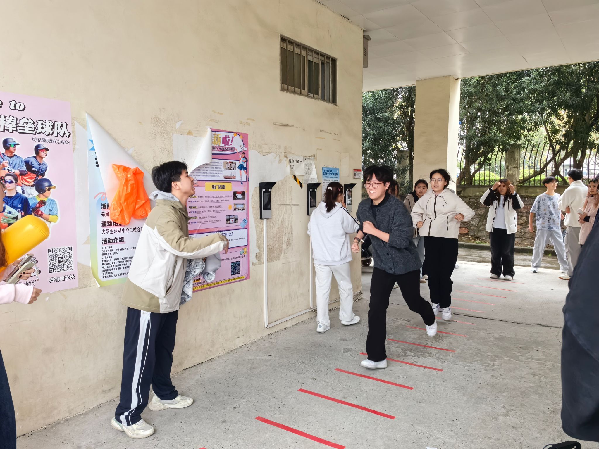 活动伊始,“集体跳大绳”项目率先点燃现场气氛,队员们配合默契,展现出良好的团队协作能力。随后的“蒙眼互打”环节更是妙趣横生,将活动推向高潮。在精彩的竞技间隙,文艺部同学献上动人歌声,为活动现场增添了轻松愉悦的氛围。接下来的“竞跃方格”项目中,队员们展开智慧与运气的较量。最后进行的“浑身牛劲”环节,在弹力绳的牵引下展开力量与策略的比拼。