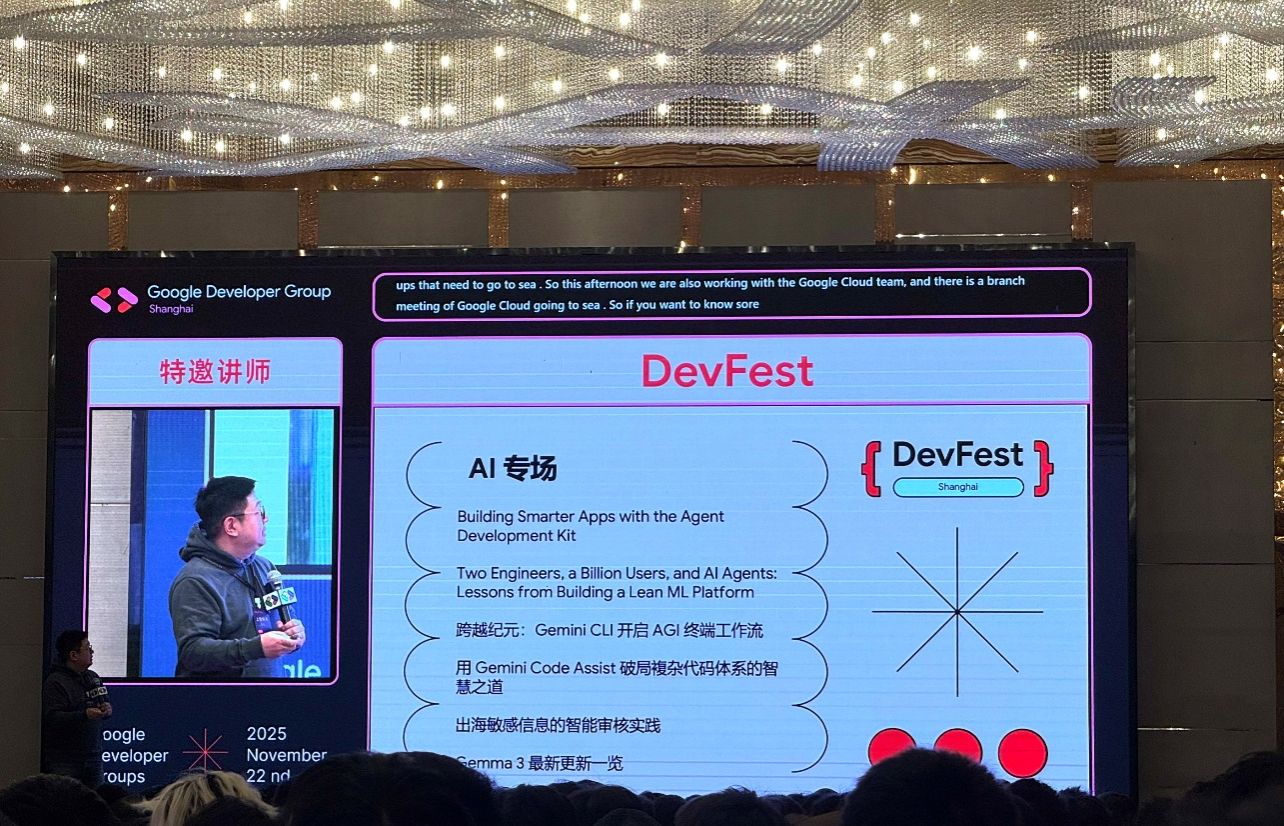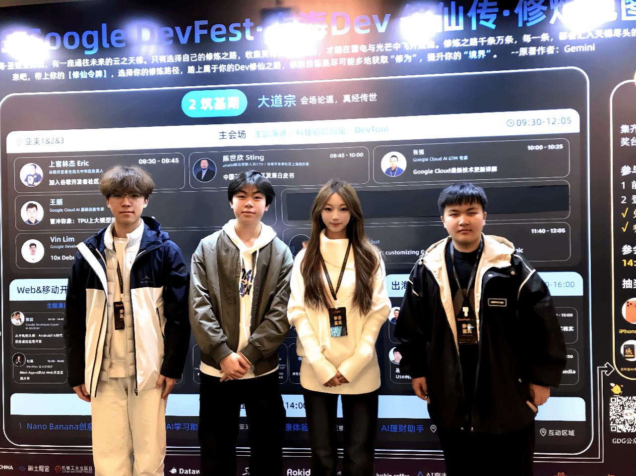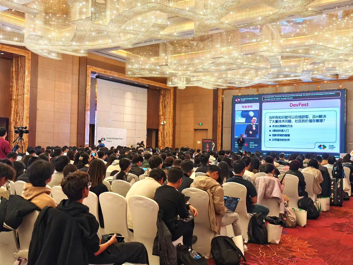 11月22日,我校开放原子开源社师生代表前往上海国际会议中心,参加DevFest2025技术大会并进行技术交流。