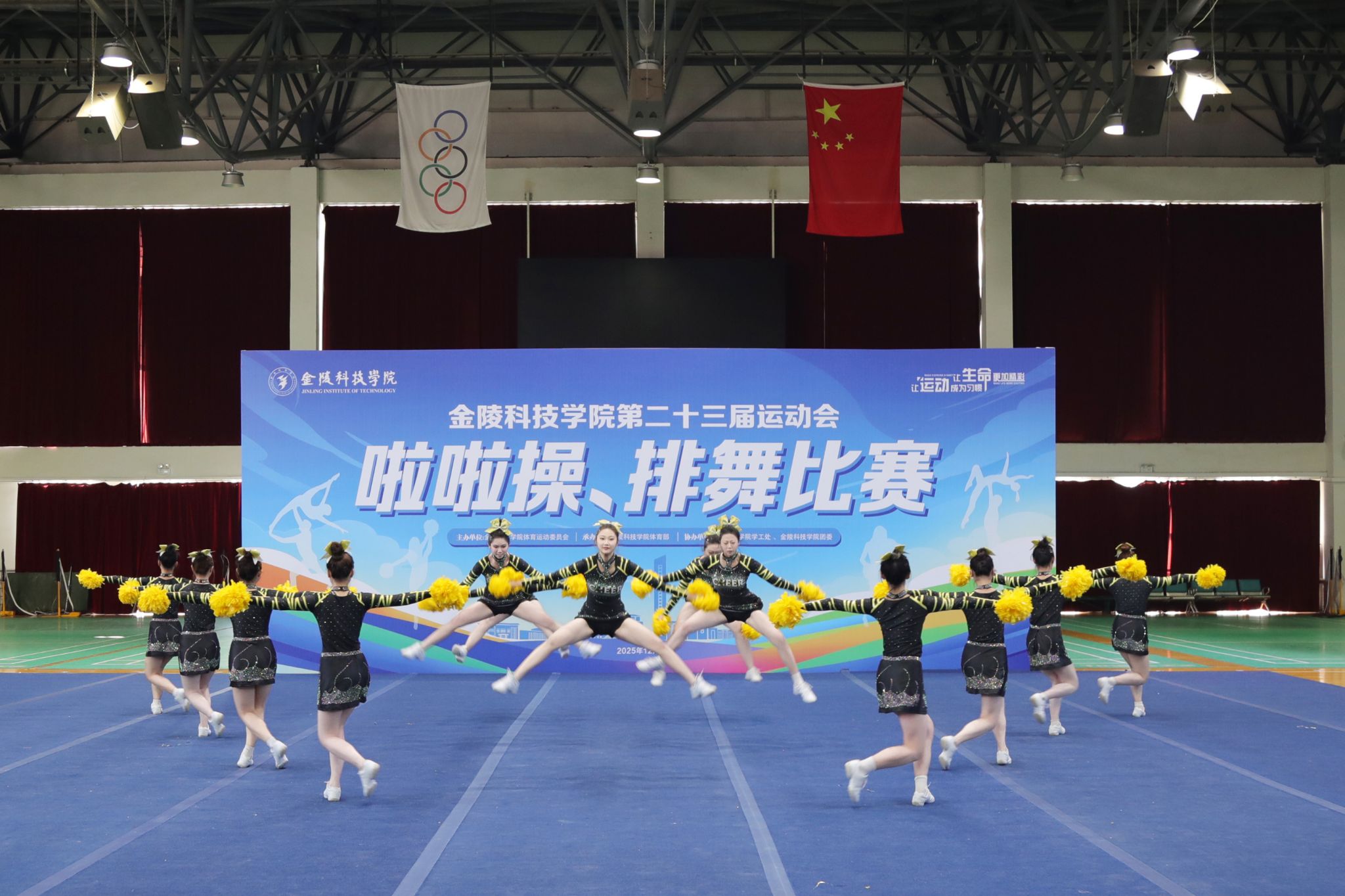 本次比赛伊始,人文学院啦啦操队队长段雨君同学代表全体参赛队员庄严宣誓:“将严格遵守竞赛规则,尊重裁判、尊重对手,以饱满热情投入比赛,赛出水平、赛出风格,展现金科学子的青春风采与体育精神。”誓言铿锵,展现了人文学子昂扬的竞技风貌,也拉开了学院代表队征战赛场的序幕。