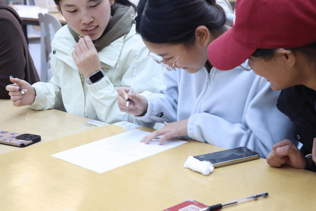 烟火气里藏温情,方寸饺皮裹心意。在包饺子过程中,同学们互帮互助,互相交流学习捏褶,手指灵巧地一折一捏,动作娴熟,笑语不断,制作出的饺子每一个都裹着满满的真诚与暖意。在等待饺子出锅的同时,同学们一起玩了智趣游戏——你画我猜接力版。各组同学接力作画,或抽象或生动的画作在指尖诞生,现场欢声笑语此起彼伏,其乐融融,充满了冬至的快乐和集体的温暖。