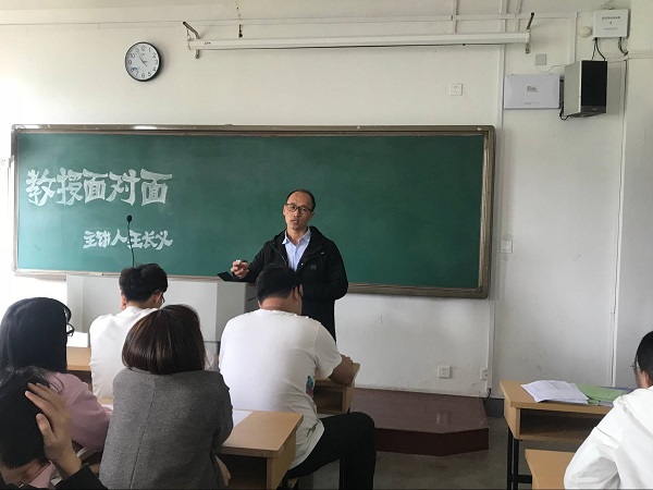为了提高同学们专业学习兴趣、增强对专业的理解和认识、普及专业就业方向,做好职业生涯规划,园艺园林学院于2018年4月18日下午在教学楼412举办了“教授面对面”活动,王长义副教授应邀与16、17级学生代表进行了亲切交流。