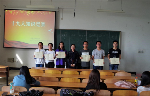 为贯彻落实党的十九大精神,电子信工程学院学生党支部于2018年5月23日15:30在3302教室开展了党的十九大知识竞赛。学院学生党支部书记吴丹,全体党员、预备党员、发展对象、部分积极分子参加了此次知识竞赛。