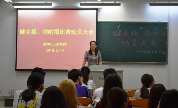 2018年5月14日中午12:15,材料工程学院在2209教室举办了啦啦操、健美操动员大会。学院党总支副书记陈智慧、辅导员江赛德老师出席本次会议。