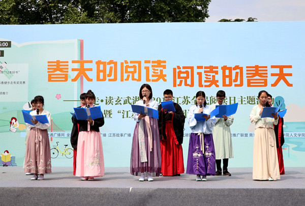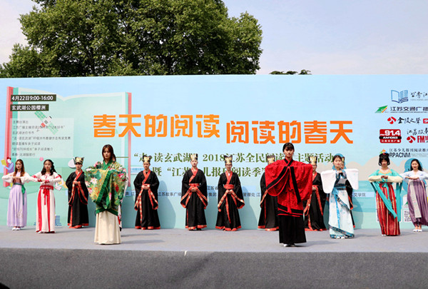 春日迟迟春草绿,本次活动以踏歌为名,与《青春》为伴,生动呈现了诗文中的玄武湖之美。春光正暖,明珠在侧,穿插在同学们诵读的十三篇玄武湖诗文中的三个表演节目:汉服礼仪展示、小合唱《本事》以及舞蹈《踏歌》,则以清新的气息带领现场的读者穿越了历史,玄武湖之美、诗文之雅跃然溢出纸面。围绕玄武湖诗文设计的现场互动环节也取得了很好的效果,充分体现了南京市民对玄武湖的熟稔和对文学的关注与喜爱。