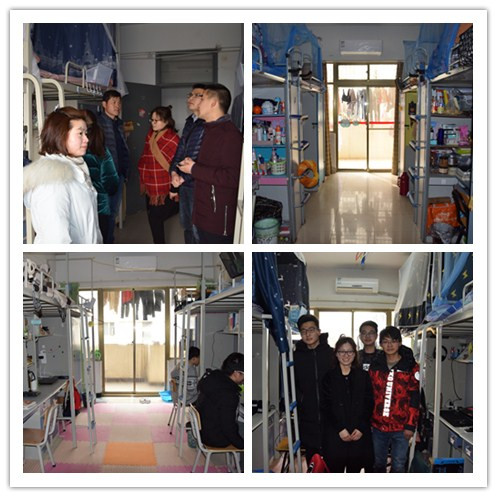 检查小组在宿舍管理员的带领下先后检查了男、女生宿舍楼。规范、整洁的宿舍展现了金科学子优秀的精神面貌与生活作风,而对于部分不达标的宿舍,老师们与学生进行沟通,教导他们要养成良好的生活习惯、努力营造舒适的学习氛围。最后张理航老师与宿舍工作人员进行了亲切交流,询问他们的工作难题与学生们平日的生活状况,力图今后共同将学生宿舍建设的更加文明、规范。