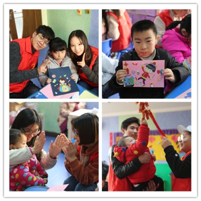 活动前,队员们开会进行头脑风暴,确定了本次活动主题及内容,同时队长为队员们做了活动培训。来到婷婷幼儿园,志愿者在带队老师的指导下对小朋友进行分组,志愿者蹲坐在孩子们身边,与他们交流沟通,以拉近彼此的距离。活动正式开始,志愿者与孩子们共同制作新年贺卡,大家剪裁各种漂亮的新年图案粘贴在贺卡封面,用画笔在贺卡内页绘制了对未来一年的憧憬和美好祝福。虽然志愿者无法用正常语言跟孩子们交流,但是他们用眼神和手势传递对孩子们的关爱,手把手地帮助孩子们,孩子们也甚是开心,活动现场笑声不断。最后志愿者为孩子们分发水果零食,陪他们一块吃下午茶,并合影留念,记录下了这美好的一天。