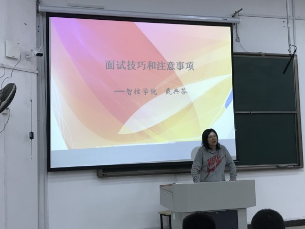 为更好推进智控学院就业工作, 2018年10月19日下午3:20, 智控学院在7100召开2019届毕业生就业指导会。智控学院党总支书记戴典芬,系主任、辅导员及毕业班班主任出席本次大会,毕业班全体学生参加了本次大会。