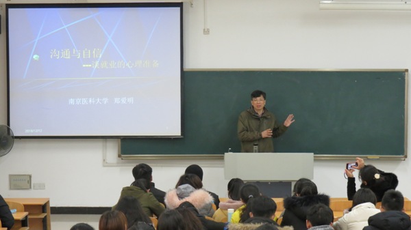 活动伊始,党总支副书记陈智慧为大家介绍了主讲人郑爱明教授的研究方向。随后,郑教授开始了题为“沟通与自信”的专题讲座,郑教授和同学们谈到教室前三排应不应该坐满和老师要提高同学们的点头与抬头率的问题,并发表了自己的看法;随后,通过一个测试帮助同学们了解自己适合什么类型的职业;讲座的最后,郑教授告诫同学们大学一定要做的六件事,让自己的大学生活更有意义。活动现场气氛活跃,掌声不断,同学们认真听讲,受益匪浅。