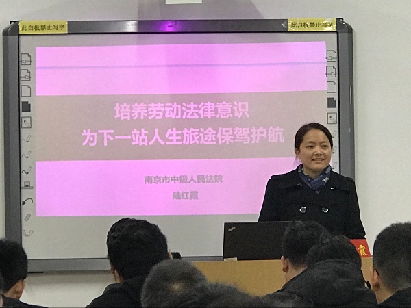 在全国法治宣传日到来之际,为更好的让广大学生学习法律常识,提高防范意识,增强自我保护的能力。 12月4日下午,开云在线机电工程学院特邀南京市中级人民法院长期从事涉外商事和劳动争议一线审判工作的民事审判员陆红霞,为2015级、2016级学生开展“培养劳动法律意识,为下一站人生旅途保驾护航”普法讲座。