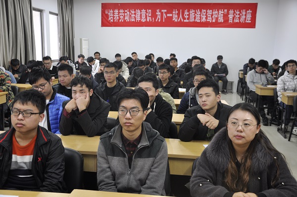 陆红霞审判员结合现实生活中大学生就业及劳动实习的案例,深入浅出地剖析了大学生在实习及工作过程中可能遇到的问题,并提出了应对策略。她重点讲述了作为一名刚踏入社会的大学生,与用人单位订立、履行、变更、解除或者终止劳动合同中会遇到的常见问题及应对。特别是试用期的期限、劳动合同的签订、社会保险的缴纳、加班工资的计算、解除劳动合同的情形、经济补偿的计算、如何维权等与机电学子进行了交流和互动。