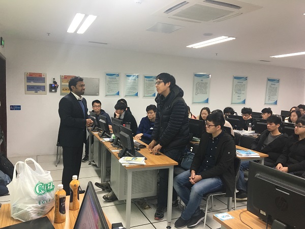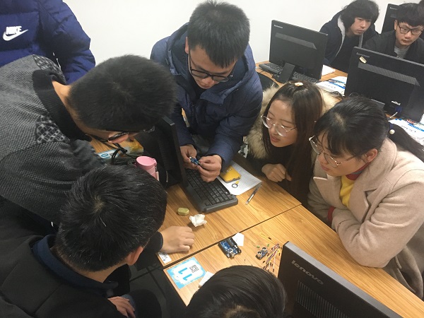 交流过程中,双方师生以物联网知识为基础,展开了深入的交流学习。来自江苏第二师范学院的Prashant老师首先为大家介绍并讲解了物联网相关知识,强调应用创新是物联网发展的核心。在理论学习之后,双方同学展开了热烈讨论,随后大家又通过实验的形式,进行实践操作,从实际的角度去理解物联网的简单构造,同学们收获颇丰。