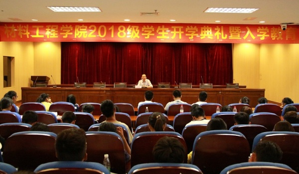 为让2018级新生尽快适应大学生活,2018年9月28日,材料工程学院在图书馆第二报告厅开展了2018级新生开学典礼暨入学教育大会。材料工程学院党总支书记陆秋林、院长郝凌云、副院长叶原丰、党总支副书记陈智慧、学工办主任邱勤、教务科副科长陈莉莉,以及全体辅导员参加了本次会议。