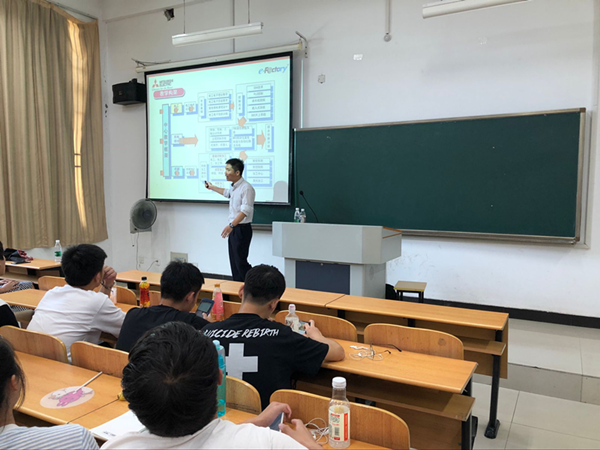 第一部分:5月31日老师带领学生赴南京博览中心参加菲尼克斯智能技术创新与应用大赛启动仪式。第二部分:7月11日和12日分别由来自三菱电机自动化(中国)有限公司杨弟平经理开展关于“面向智能制造新型人才培养&探索”的讲座和菲尼克斯市场推广部钱秀娟经理开展关于“SCRM营销解决方案”的讲座。第三部分:7月13日老师带领学生参观菲尼克斯公司。工作人员向同学们介绍了菲尼克斯在中国的发展历史以及此分公司的规模并带领学生亲临公司的生产车间,让学生对元件的生产有直观的了解。