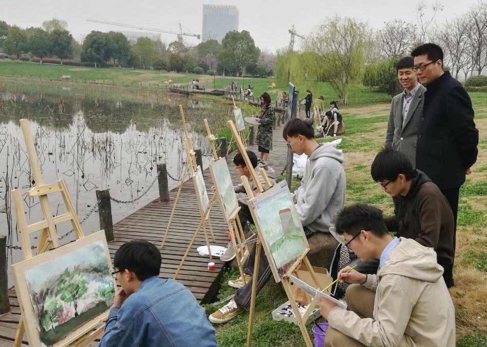 恰逢初春,柳芽随春风轻抚,蛙鸣在湖面泛漪。在春满校园的宁静氛围里,学院心理辅导站王老师为同学们讲解了色彩心理学的相关知识,告诉大家要关爱自身心理健康,善于发掘运用积极的心理色彩。同学们则以“描绘情绪”为主题进行写生作画,以丰富的色彩构图来表达出不同的情绪特点。随后,同学们以自己所描绘的情绪主题对作品进行了命名,并在活动横幅上签下了作品名称和自己姓名。