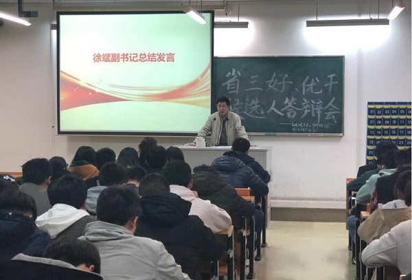 3月22日晚,软件工程学院、网络安全学院在1206教室召开了2019年度省级三好学生、优秀学生干部评审会。院党委副书记徐斌,学工办副主任李勇,各年级辅导员出席此次会议。团总支学联主要学生干部、各年级班委作为大众评审参与了本次会议。
