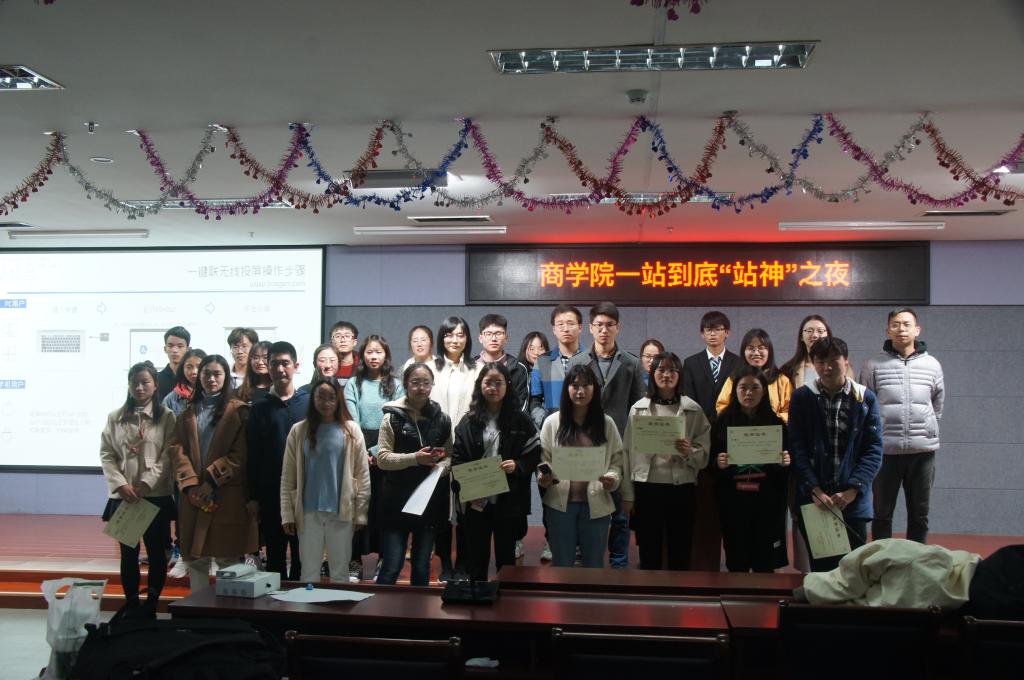 经过前期初赛激烈追逐,最终共15名选手入围决赛。顾磊副主任在致辞中鼓励大家通过学习增强综合素质,并预祝佳绩。此次比赛以精彩、激烈的知识竞答贯穿始终,参赛选手以昂扬的斗志和饱满的精神状态出色的完成了各个环节,精彩的对决将现场的气氛一次次推向高潮。在紧张激烈的比赛过程中,穿插着的暖场小游戏及选手们的才艺展示也赢得了观众的阵阵掌声。最终,庞维、张艺伟同学分别获得了“黄金战神”和“白银战神”的称号,张金金同学斩获了“终极战神”和“人气战神”的双称号。陈婧老师和周家来主席为他们颁奖,他们也将代表商学院在学校“一站到底”知识竞赛舞台上再放异彩。