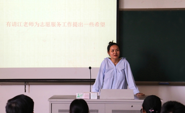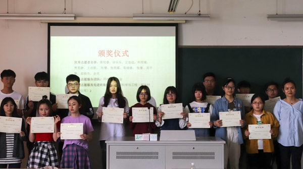 活动伊始,志工部徐乐乐同学介绍了一个学期以来志愿者们工作的点滴瞬间;随后,江老师表扬了志愿者们的工作,宣读了表彰决定并对今后的志愿服务工作提出了几点希望;之后,获奖学生代表和志愿服务团队代表分享了自己在志愿服务中的收获和心得;最后,江老师和学生会副主席张雷为获奖志愿者和志愿服务团队颁发荣誉证书。