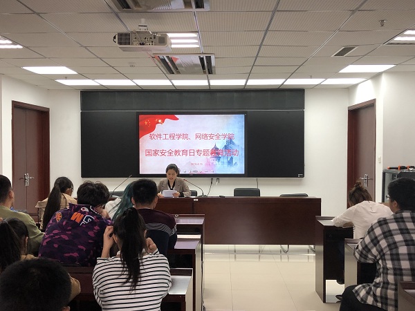 在第4个全民国家安全教育日到来之际,软件工程学院、网络安全学院组织全体学生党员、主要学生干部在科技楼2号楼423会议室开展国家安全专题教育活动。学生党支部书记邵彦婷和16级辅导员马晓辉参加本次活动。