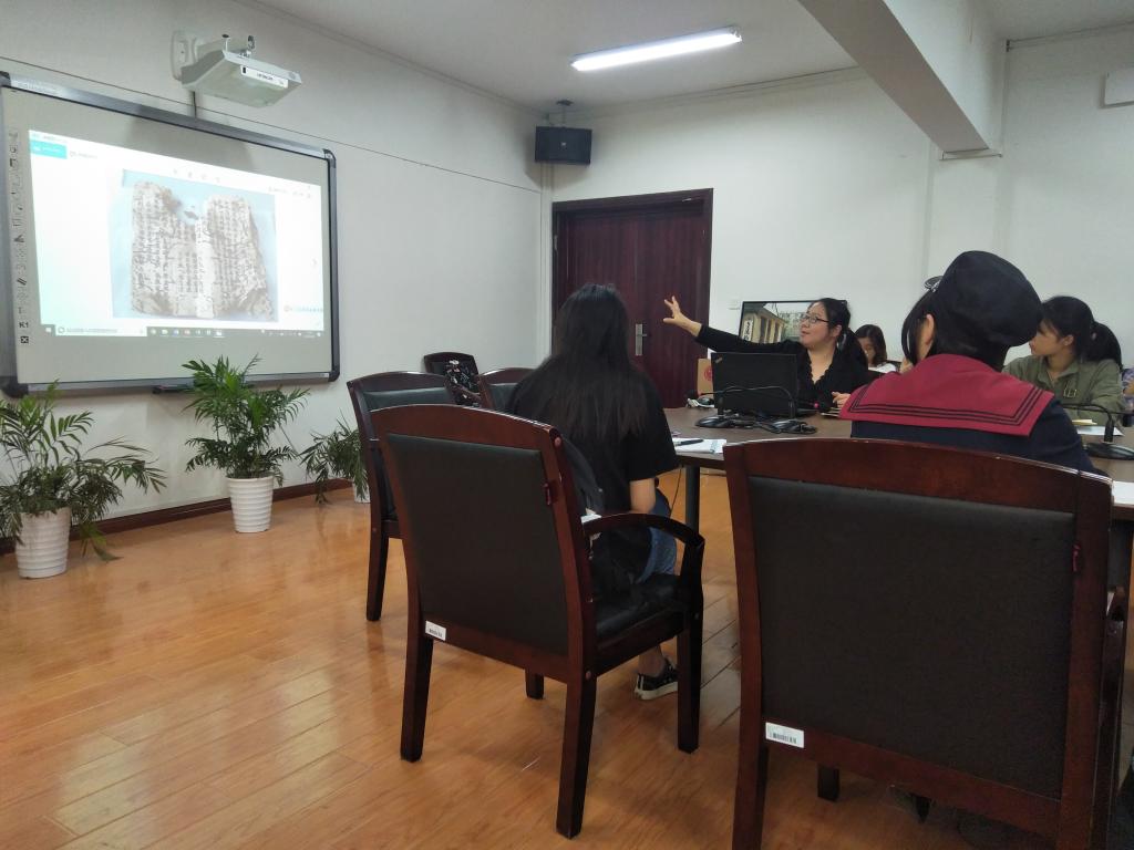 交流活动前,颜老师收集了本专业学生在学习和实践中的问题和疑惑,并归类整理出最具代表性的六大主题。首先是关于学习中专业书单问题,颜老师将其分为基础、进阶、升华三个阶段学习,分别为同学们推荐了书目和制定了读书计划;其次,就本专业培养方向和人才培养计划,她建议同学们要增强学习能力和思维能力,通过专业培训不断提升实践技能;再者,颜老师还向同学们传授了如何达到高效而踏实的进行专业学习,如何增强专业学习兴趣的经验与方法。最后,就同学们关心的考研、实习实践等问题,为同学们指明了方向,确立了目标。交流会上,颜老师还为同学们播放了“国家级非遗:古籍修复技艺”的纪录短片,鼓励同学们坚定专业自信,传承中华传统文化技艺。