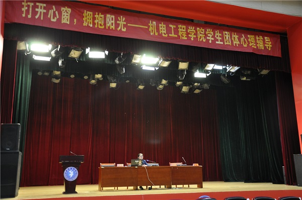 为加强大学生心理健康教育,促进学生素质和谐发展,近期,机电工程学院在大学生活动中心剧场,以“打开心窗,拥抱阳光”为主题开展了“暖春行动——高校心理问题面面观”团体心理辅导活动。全院各班级心理委员、宿舍长参会,本次团体辅导由院团总支书记纪晓明主持。